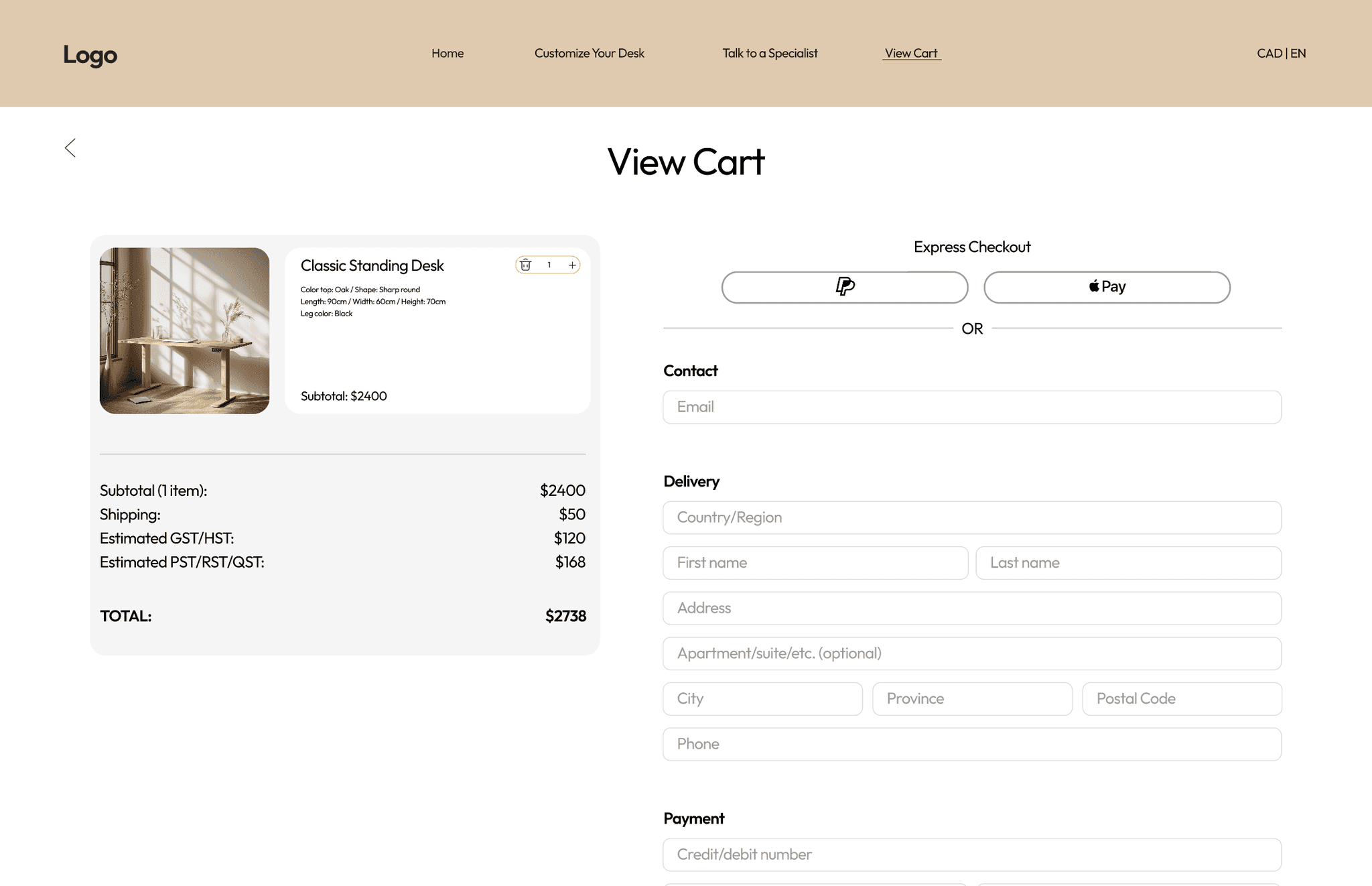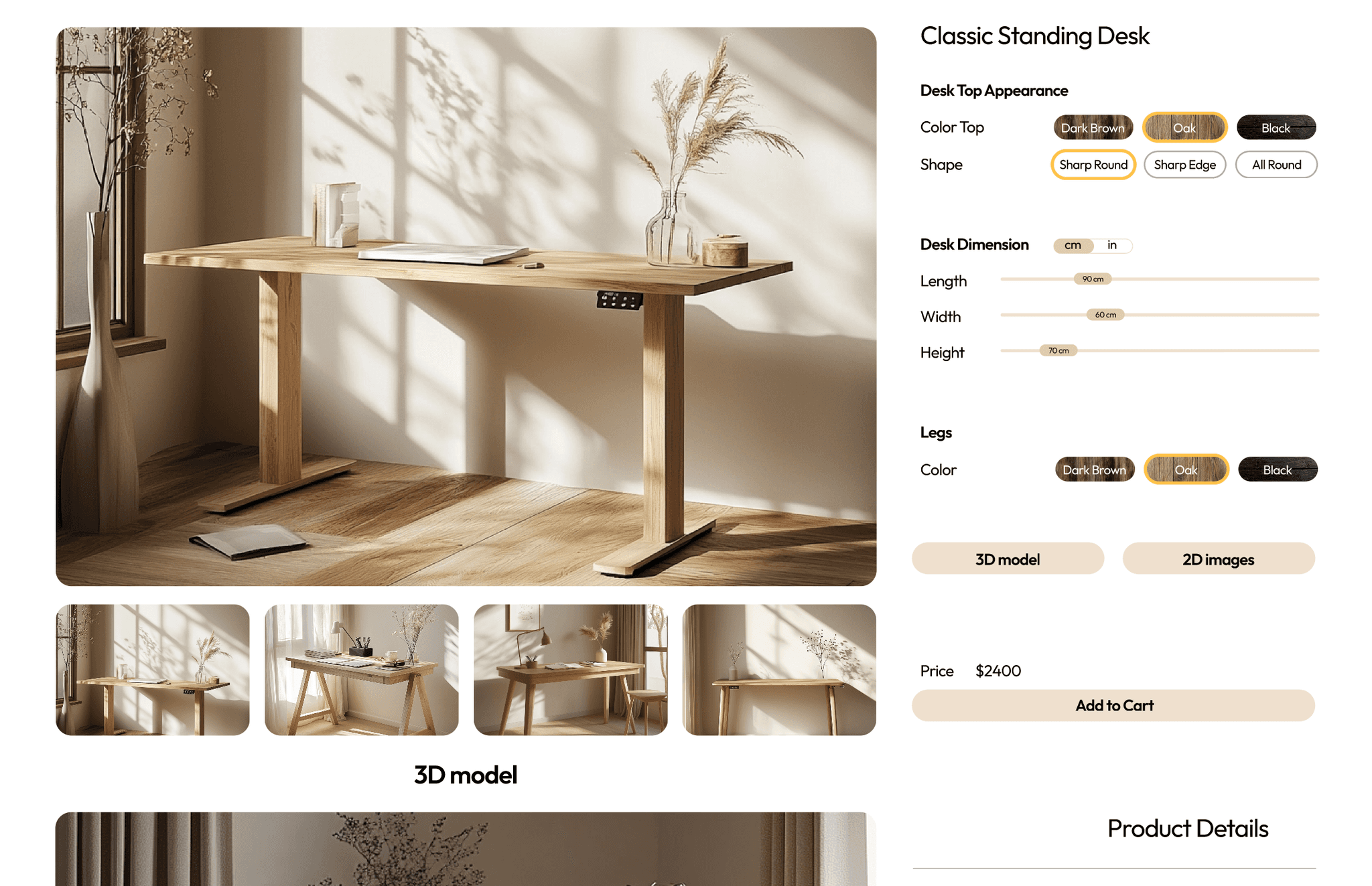 Designing a customizable desk shopping experience from wireframe to high‑fidelity prototype.