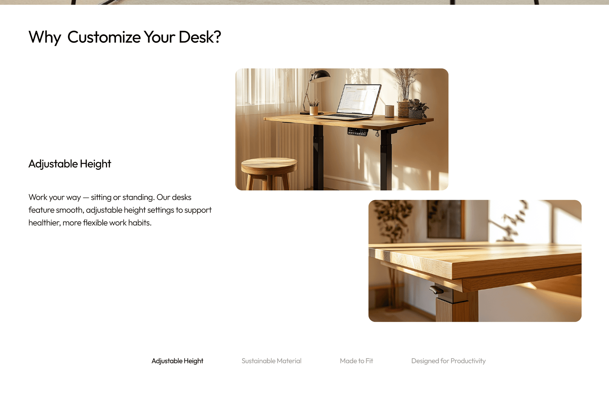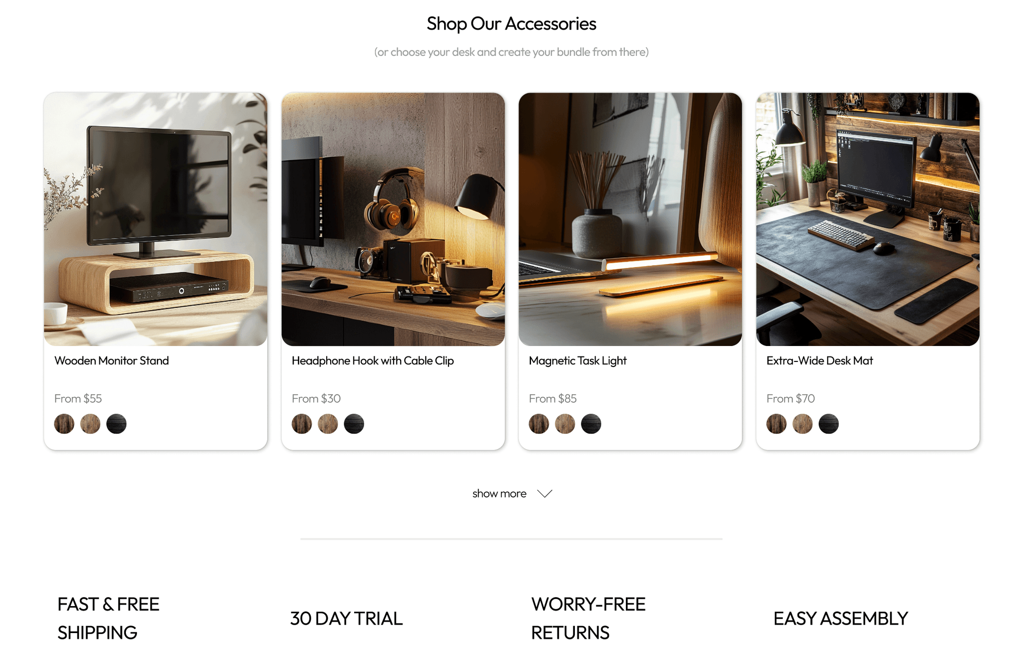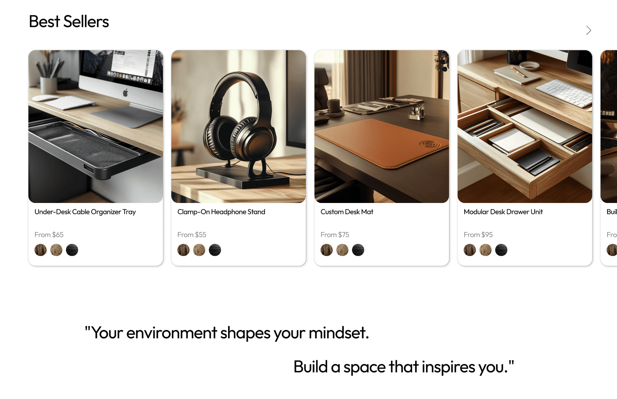 Deskly is a modern e‑commerce experience for customizable desks and workspace accessories.