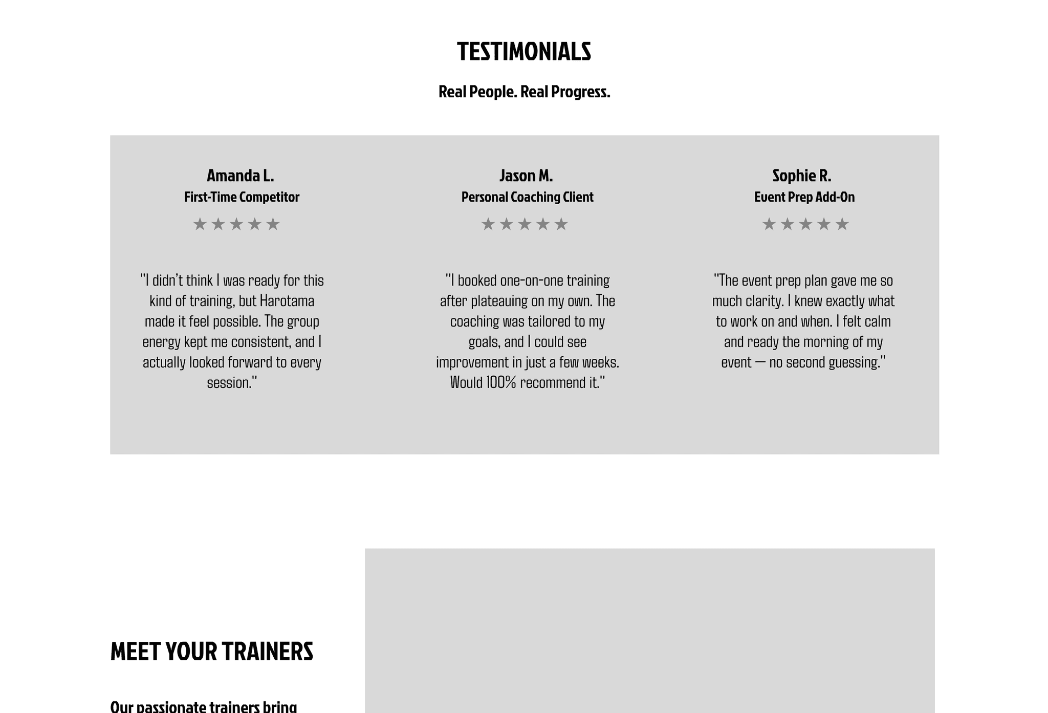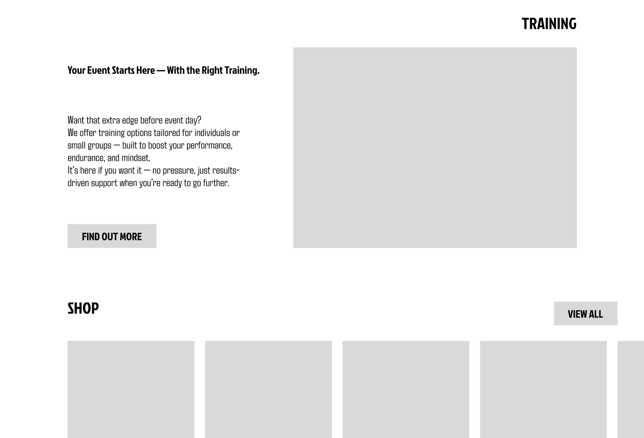 The design aimed to simplify navigation for both athletes and spectators, reduce friction in discovering upcoming races, and streamline ticket purchasing and registration. By structuring content more intentionally and highlighting personal training options throughout the site, the goal was to guide users smoothly from event discovery to checkout with minimal effort.
