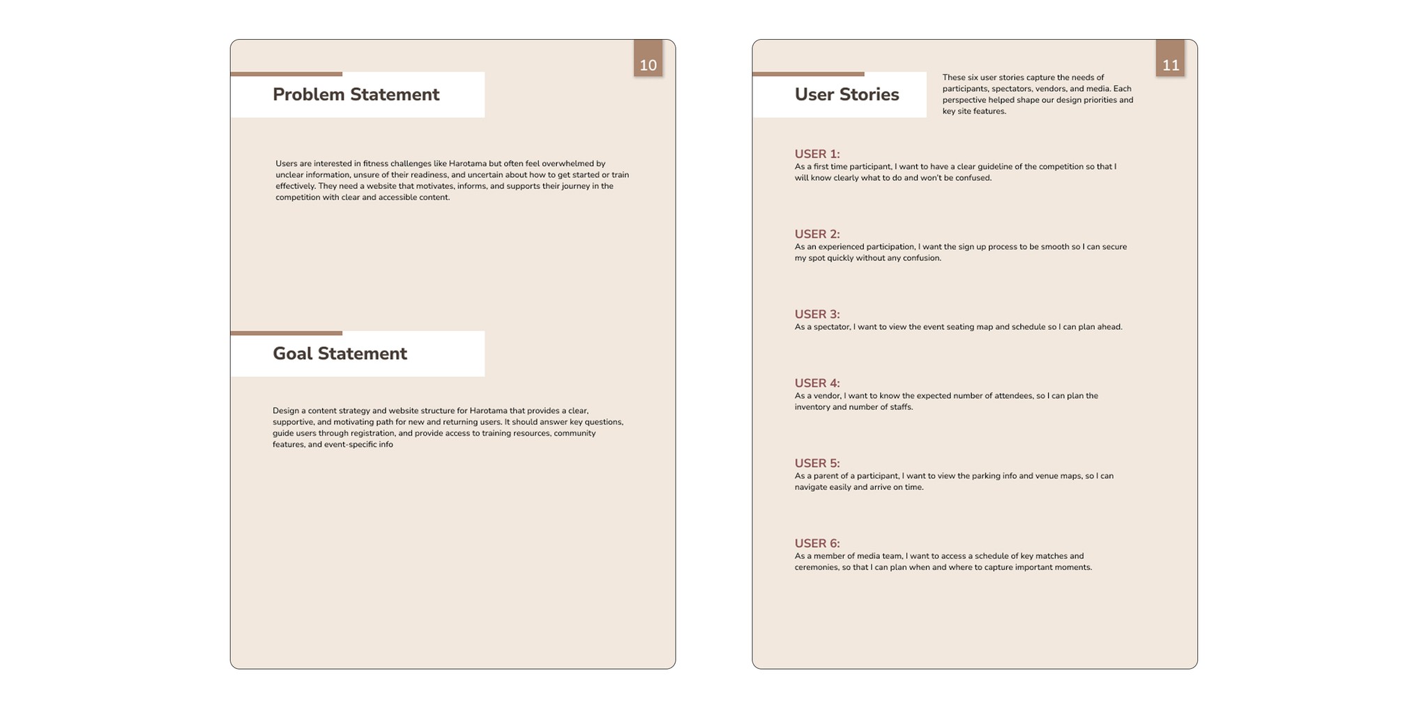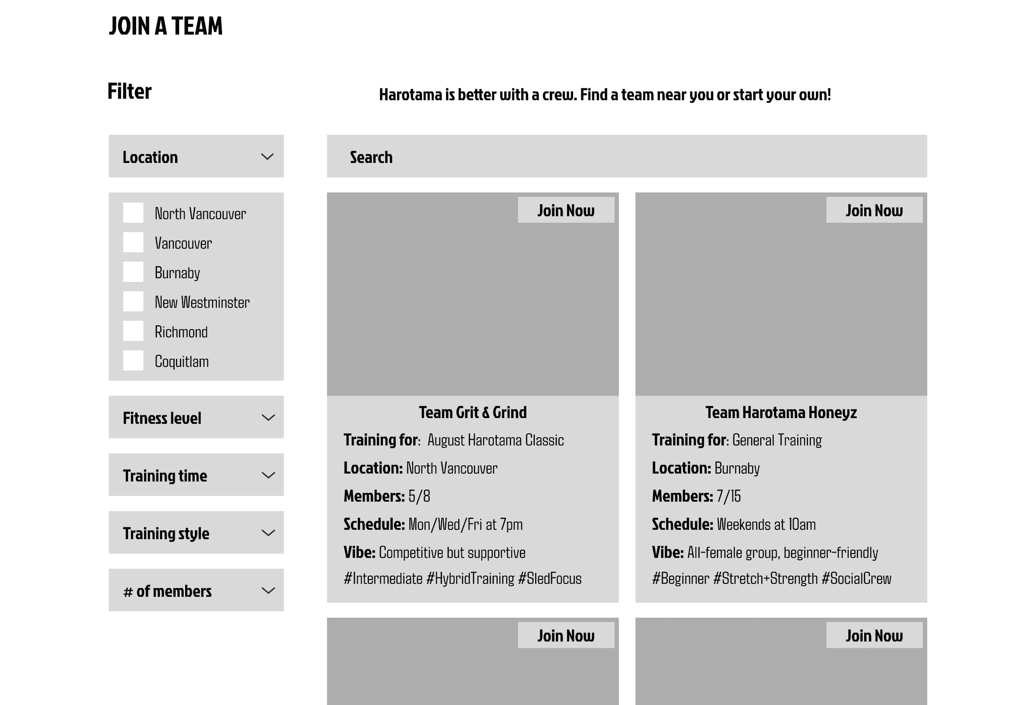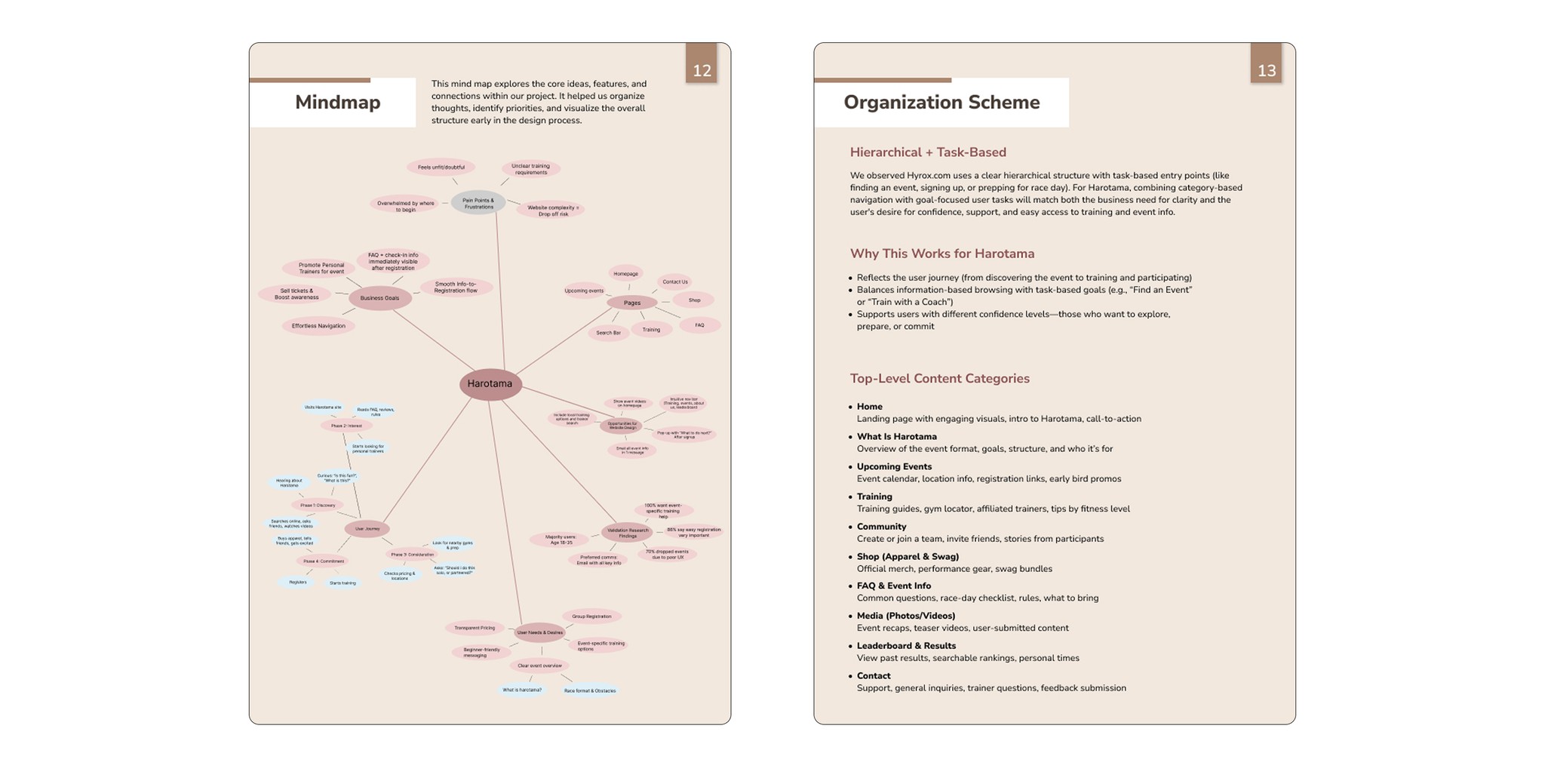 Created for an Information Architecture course, this project focused on defining the structure and early design for Harotama - a hybrid event blending functional fitness, endurance racing, and obstacle challenges.